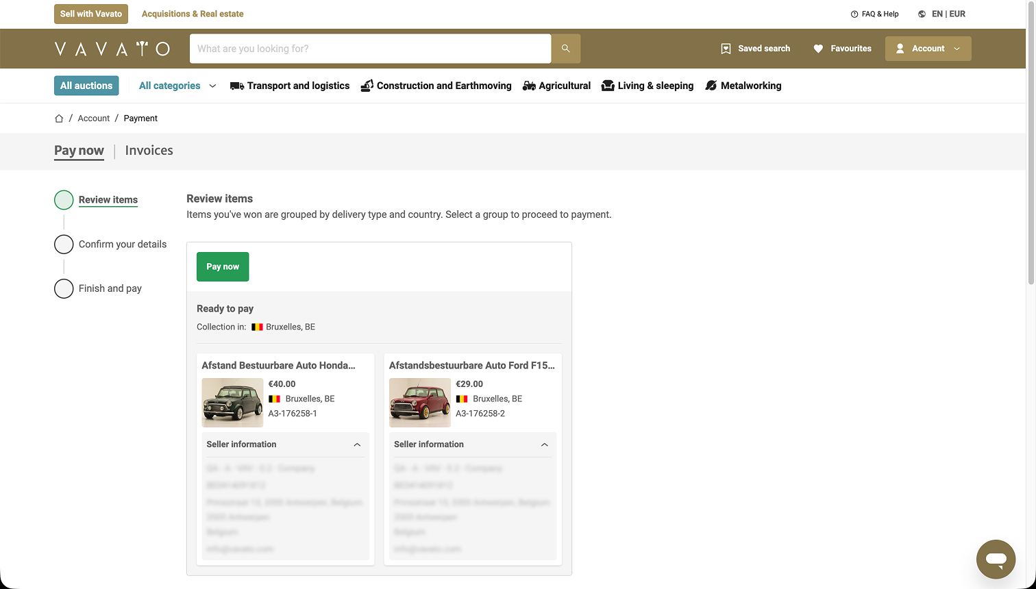 When you win an auction, you go through the following steps to complete your payment: