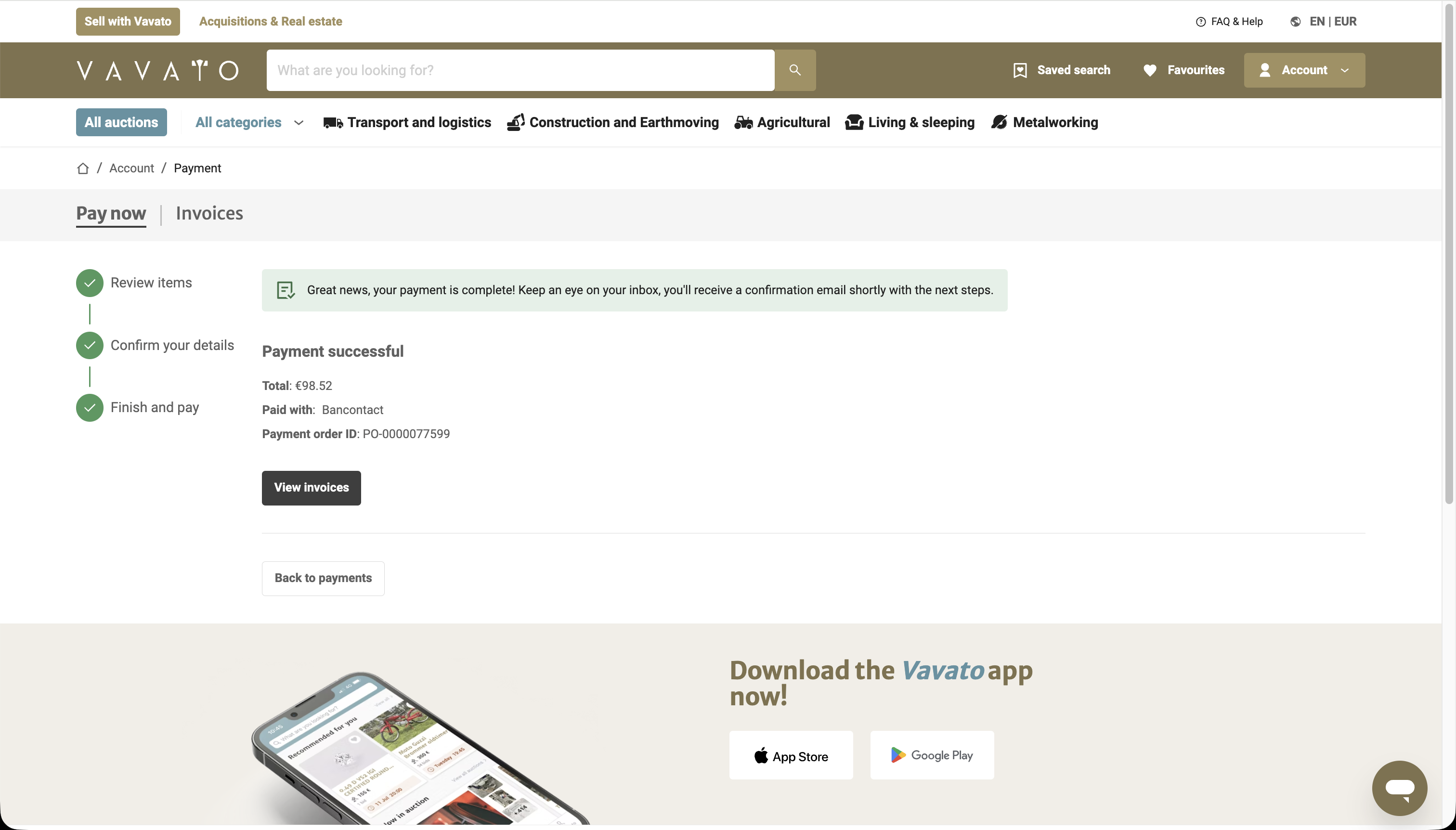 After a successful payment, you will see a confirmation on screen and receive an email with the next steps.