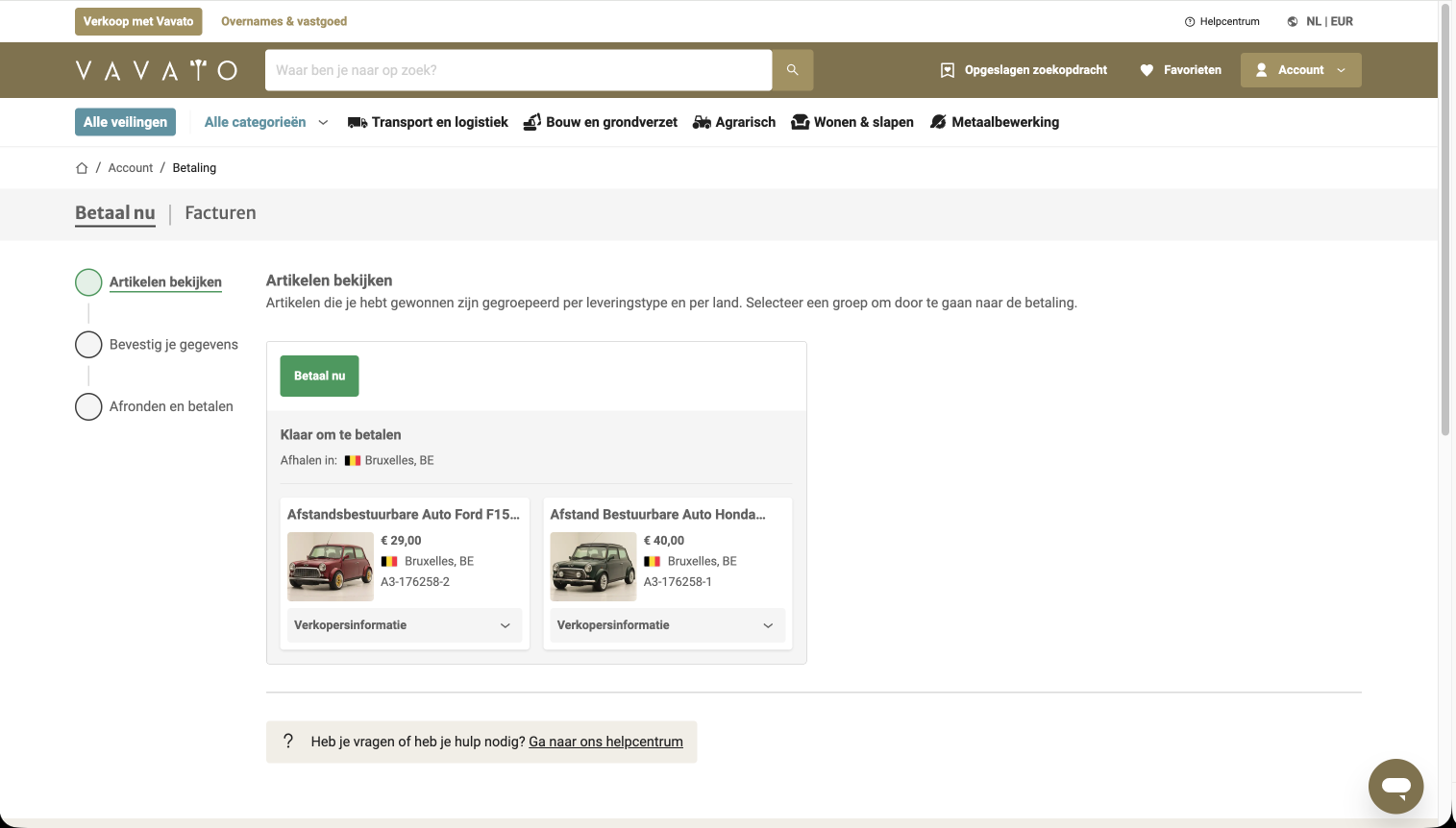 Een lot gewonnen in de veiling? Bekijk hier de stappen om je betaalproces af te ronden: