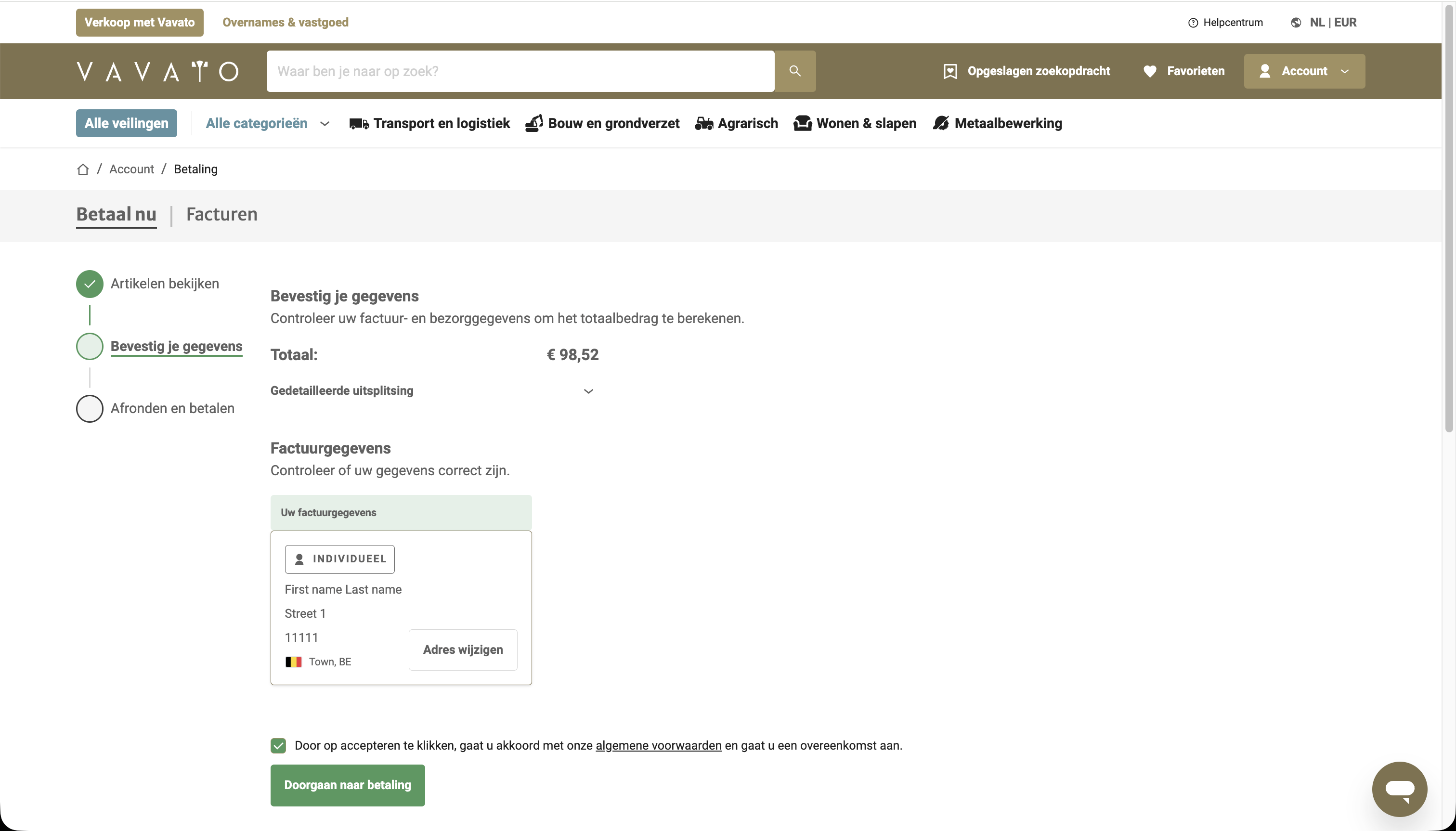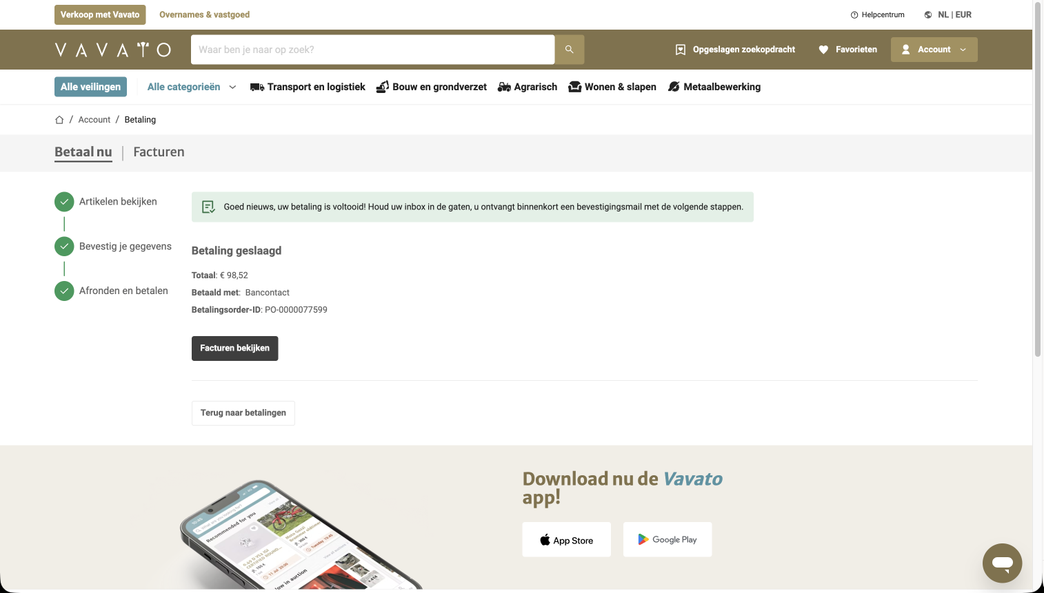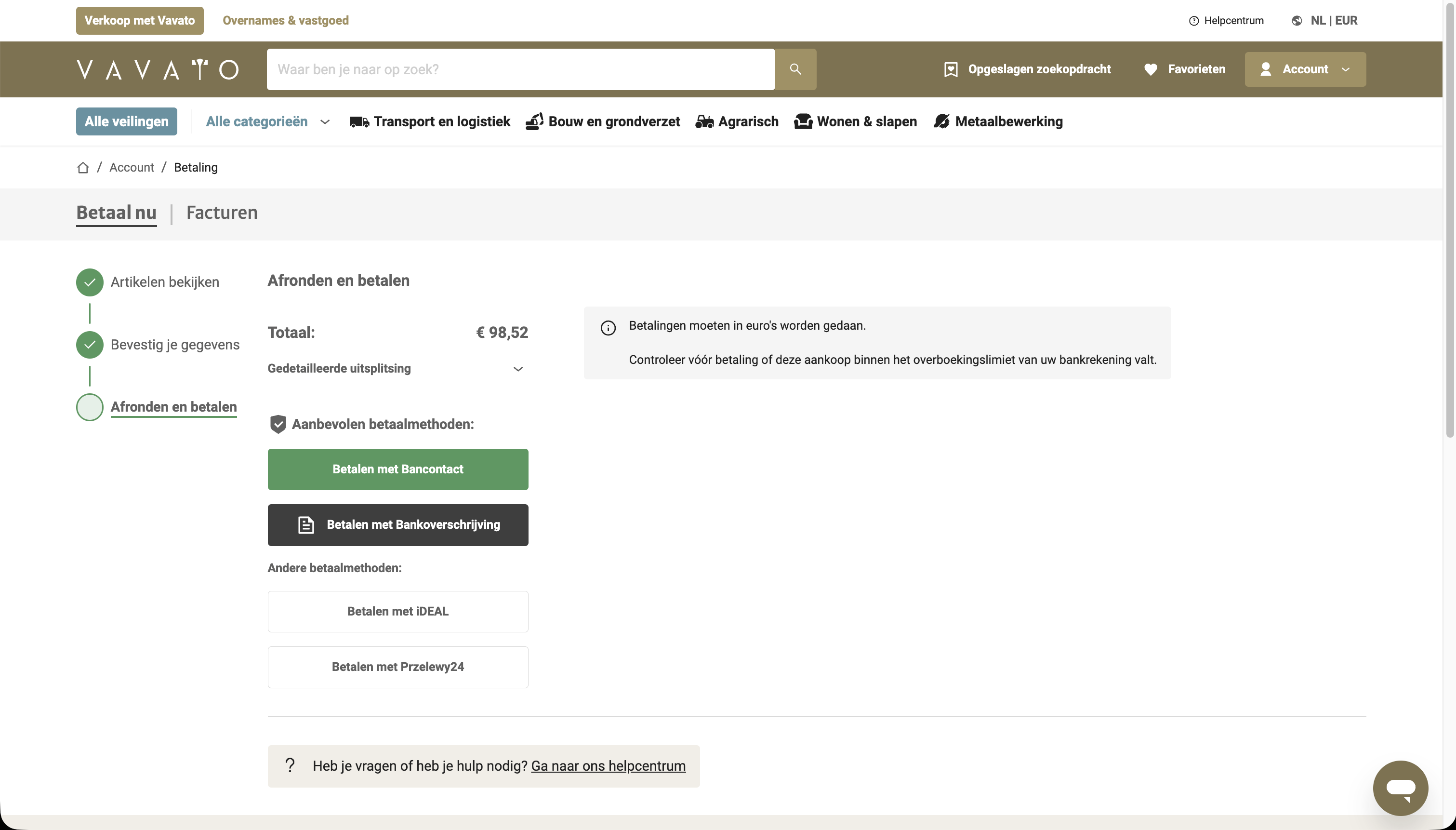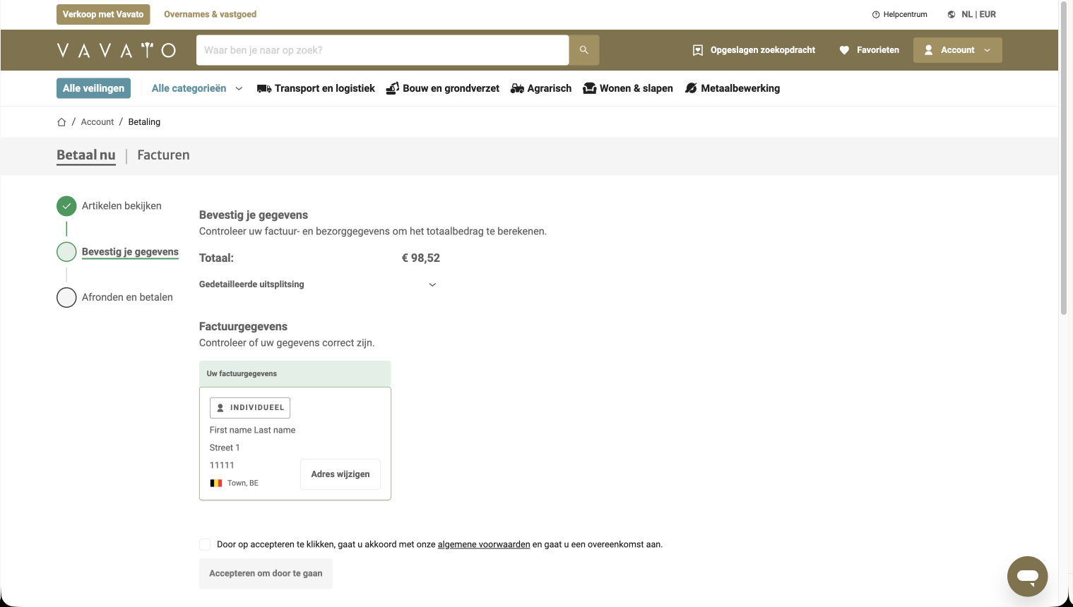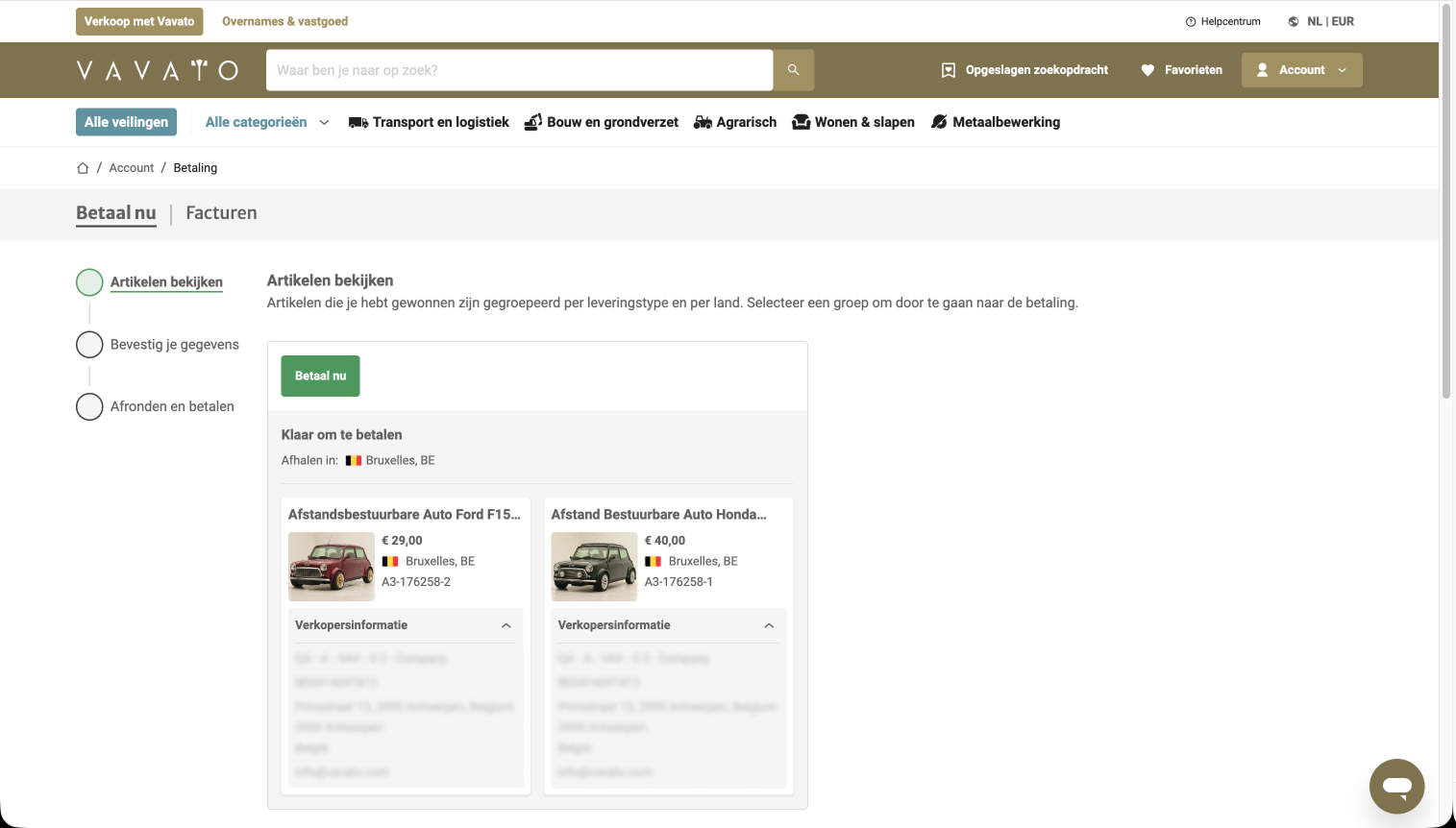 Wanneer u een veiling wint, doorloopt u de volgende stappen om uw aankoop te betalen: